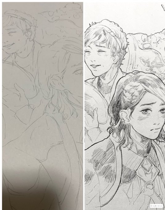 #このタグを見た人はラフ画とその完成絵を見せる