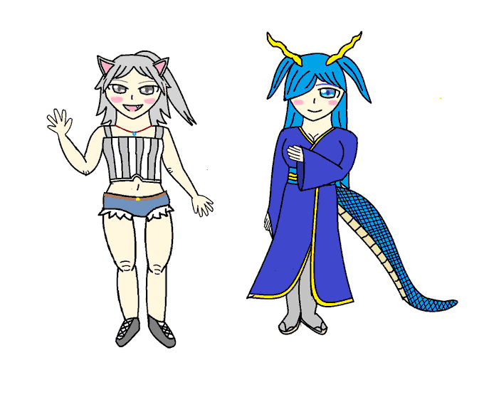 うちの子二人目、青龍の蒼琉ちゃん。 玩具を作るのがお仕事だそうです? ついでに頭身を揃えた白羅も描きました