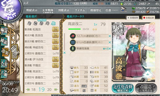 おはこんばにちは。 やっと79になったから高波改二じゃ そのままちょっとキリッとしたかな #艦これ
