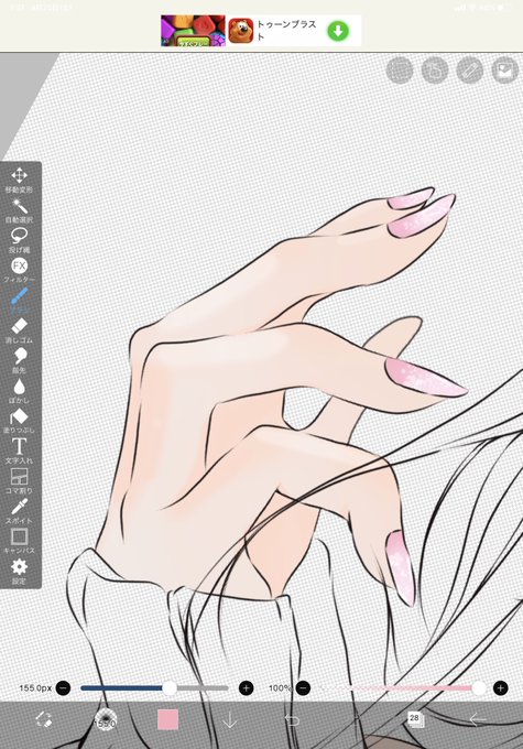 嫌いな線画終わって ちょっと楽しいとこ💭 ほんとはジェルネイルっぽくしたかった… 今度は大っ嫌いな 髪の毛塗らんといけんっ( .. )