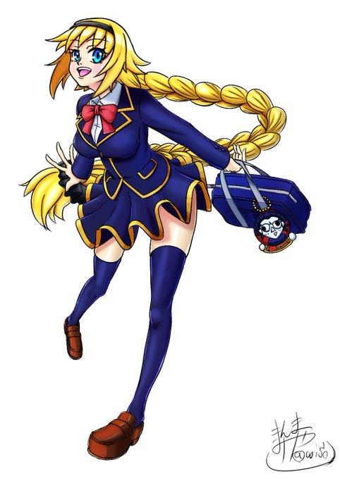 ジャンヌダルク制服ver ニーハイと黒タイの2verです。 #FateGrandOrder #fgo #FGO4周年 #絵描きさんと繋がりたい 創拡