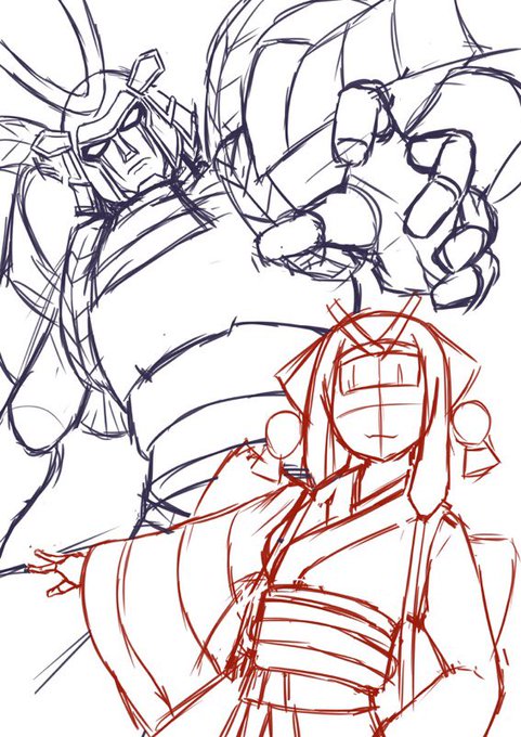 出雲阿国と斬ザブロー描きましたー---!!! 斬ザブローにアレンジをかーなーり加えてみたw もっとバリさせたかったけどムズすぎる!! #FGO #絵描きさんと繋がたい #出雲阿国