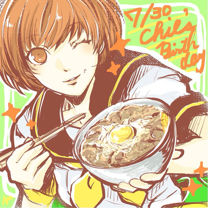里中千枝ちゃんお誕生日おめでとう! 2杯目の肉丼を食べる千枝ちゃんを描きました😋
