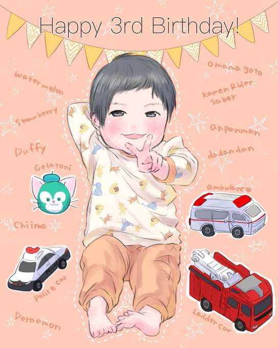 お祝いは昨日のうちに済ませました😚今年はケーキはお店に頼んだのですが今年も上のフルーツだけあっという間に食べて「ごっしょさまでした」と言われ😂プレゼントはやったー!と飛び跳ねててめちゃくちゃ可愛かったです🥰すくすく大きくなってね☺️✨
