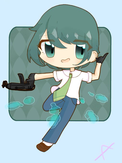 #イラストを4枚貼ると秋風に乗って絵柄を好いてくれる人の元へ届くらしい ミニキャラしか描いてないけど、 最近エアインテーク生えました。