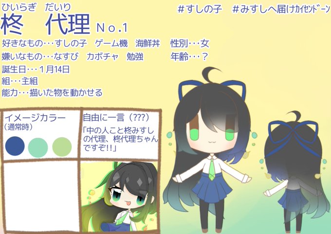 #すしの子 #創作キャラ #オリキャラ 没に没を重ねやっと完成した新代理。 名前はみすしにすると柊みすし(すしの子)と被るので代理と、そのままにしました。(髪の毛のグラデとリボンと目の色は自由に変えられます。)そして、何気に新素体である。