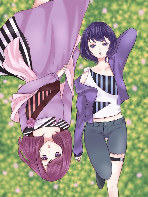 Picrewの「百合メーカー」でつくったよ! https://t.co/xDga5StBJq #Picrew #百合メーカー 安定の のの🐰この🦊 で😑 (ののの髪の黒Ver.とピンクVer.)