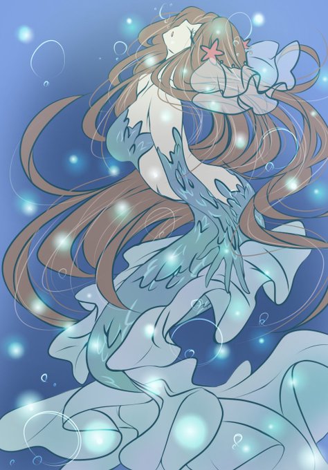 【オリジナル】人魚。涼し気な絵が描けるようになりたい。