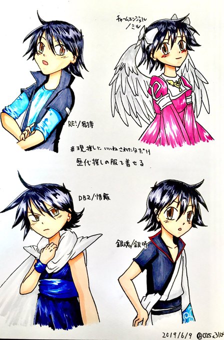 【一部女装注意】今見たらいいね5件になってたけどすみません描いたときは4件だったのでこれで…… #現推しキャラにいいねされた分だけ歴代推しの服を着せる