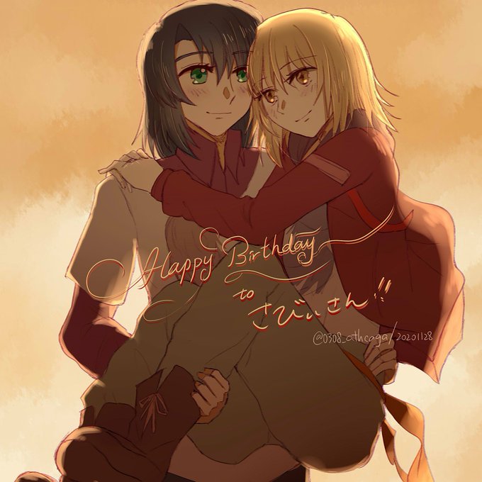 さびぃさん(@wa_sabi_iro25)のお誕生日を祝うべく、いただいたお題「もう君を離さない」的なイラスト描いてみました✨色々なシチュエーション考えたけどあえてシンプルイズベスト、なんちゃって😅