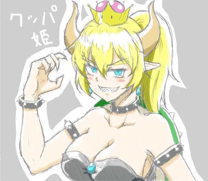 ビッグウェーブに乗っていけ、落描きだけど。 #クッパ姫