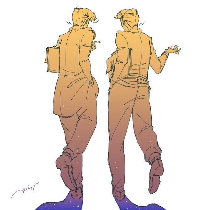 Illustratorを使って描いた承太郎&スタプラ完成〜〜! 2枚目はアウトライン化したものです〜!