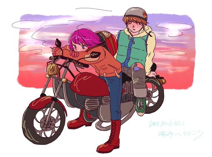 @0420164 12,上手くいったと思う絵~というか別にバイクとか全然うまく描けてないんだけど、私の思う向日と日吉の関係性とかこいつらがどこへ向かおうとしてるのかとかそういうのが何となく出てるかなと思う絵である。気に入ってます。