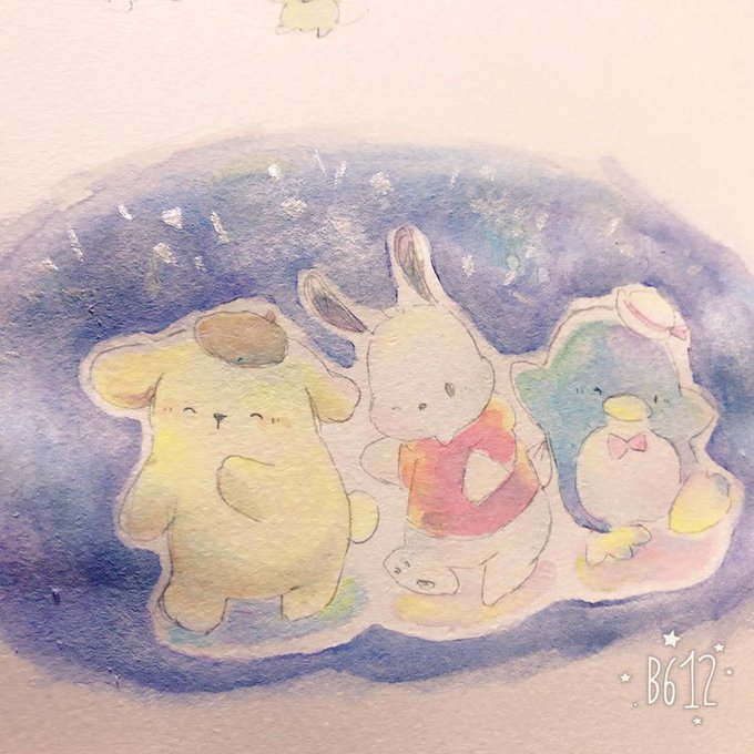 描いててすごい楽しかった😋 #絵描きさんと繋がりたい #サンリオ #ポムポムプリン #ポチャッコ #タキシードサム #水彩