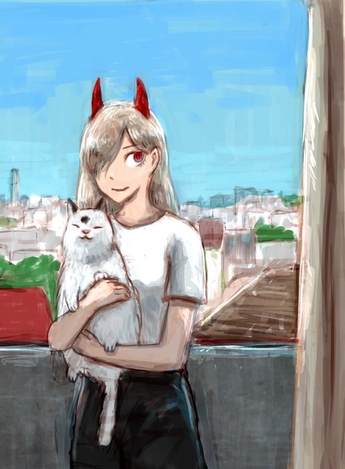 パワーちゃんとニャーコと昼下がり #猫の日 #チェンソーマン #illustration