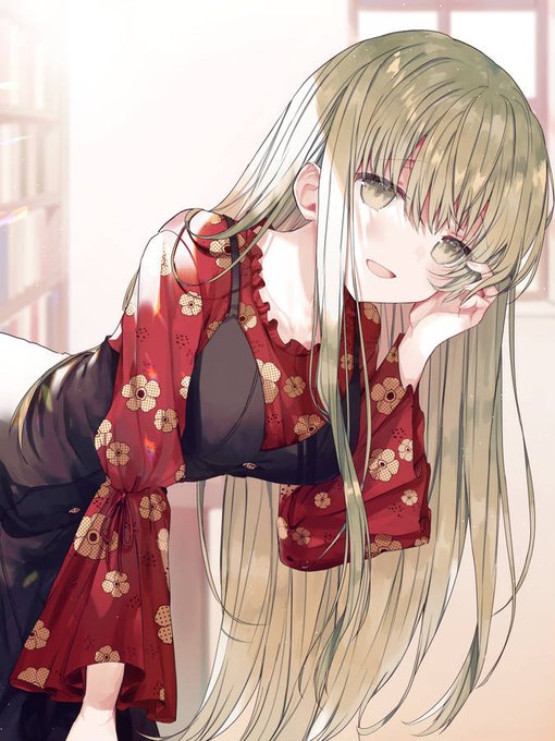 前屈み女の子 凄いロングヘアw笑顔可愛い〜