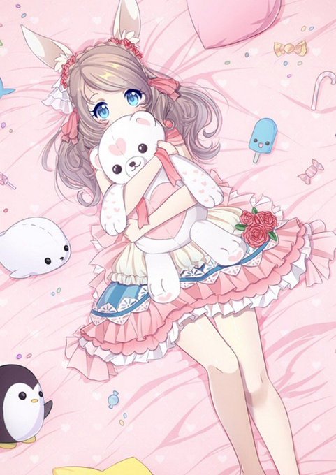 可愛いな~ピンクでぬいぐるみ抱いてw