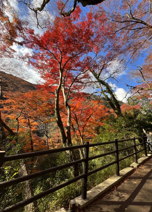 箕面大滝の紅葉が綺麗だったな、モブ!!