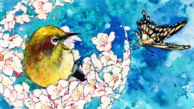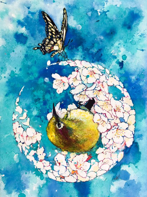 依頼で描きました。 テーマは春と依頼主のうさぎ (許可を得て掲載しています。) B5 アクリル、水彩、色鉛筆