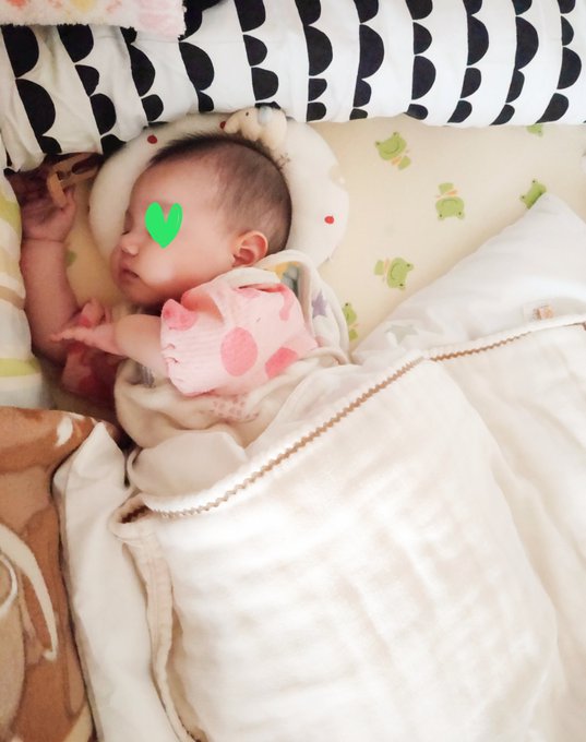 最近寝かしつけたあと、なぜか北西を目指すんですよね。 なんでだろう? だいたい夜中枕はずれてるのでそっと挟んでます。