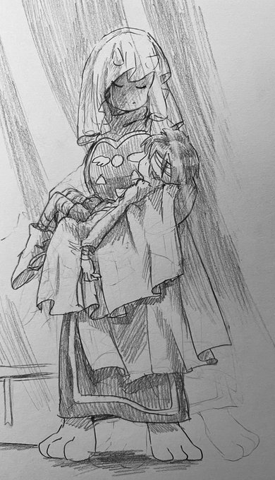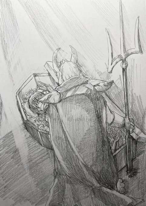#今月描いた絵を晒そう 人の子と3匹のモンスターの末路