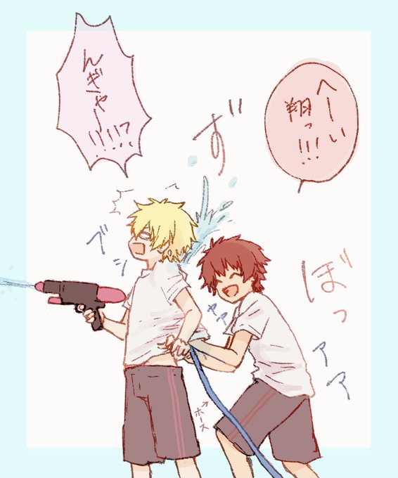 水の掛け合いでなく水をつっこむ夏のサッカー組いいなぁってらくがき⚽️🔫💦