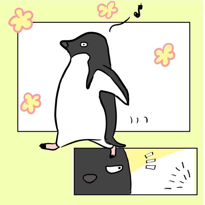 今日は #世界ペンギンの日 だそうです🐧 新作🌸 タカヘとペントローを描きました🐧🐓