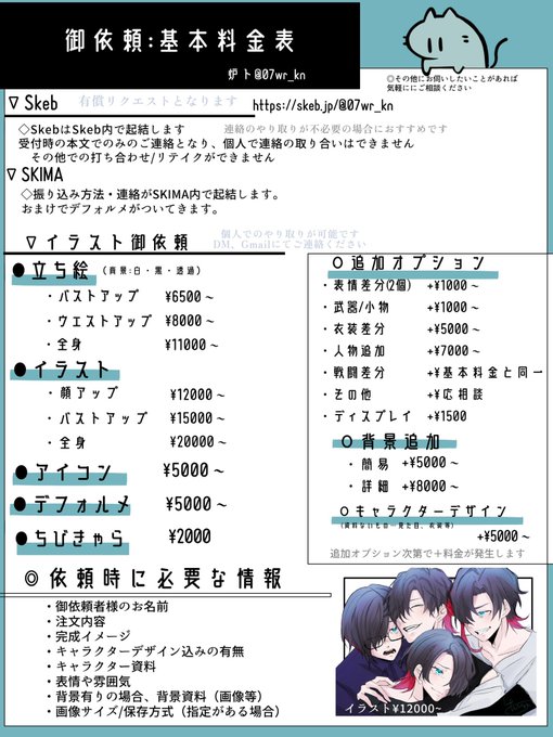 【ご依頼案内】 ご依頼の際の目安となります! お気軽にDMでもお見積もり等ご質問あればご連絡ください ツリーに別サイト等繋げてあります よろしければ拡散等お願いします #有償依頼