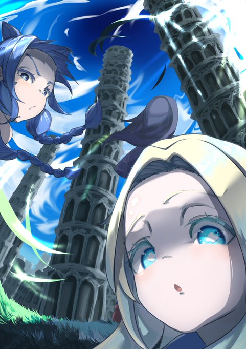 蒼色と塔 #イラスト #春の創作クラスタフォロー祭り #無名絵師