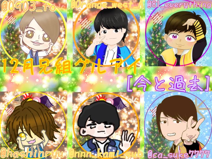 12月 兄組グルアイ [今]と[過去] 神威ちゃん(@hashinryu )主催です🥰 私は[今]の淳太さんで参加してます💛 アメフリ→レインボウの衣装です!🌂🌈 12月もあと少しですが、よろしくお願いします~!