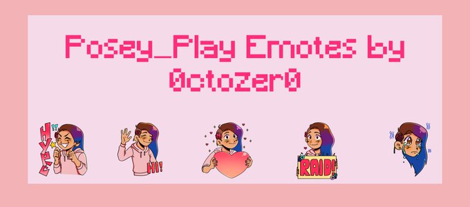 Emote Commission for @Posey_Play , it was so nice working with them! Once again, congrats on affiliate, and I hope you enjoy the emotes!