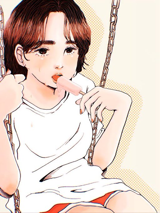 白いシャツにアイスが溶け落ちるのがエモいエモカワガールです!👍 https://t.co/bno6xQsAal