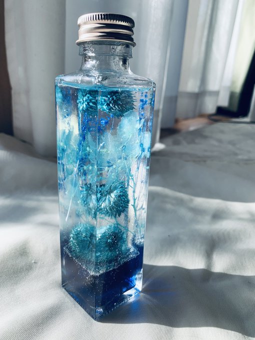 描いた絵と撮った写真📸 自作した青ハーバリウムです!!