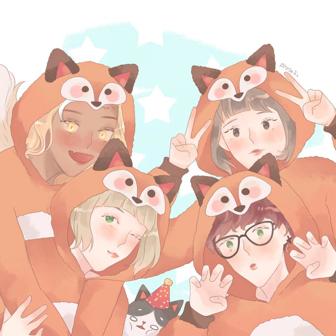 Fox family + 1 nuisance. Accidental ootd quadruplets. (^ミ◝ω◜ミ^)