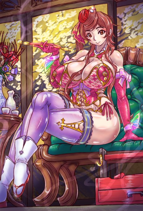 ゆうぎり姐さん頑張って描いたったんだぜ! 生前の伝説の花魁っぽく和洋折衷で服とか小物とかモリモリしてたら結構時間かかったんだぜ!ポロリとゾンバレもあるんだぜ! #ゾンビランドサガ #ゆうぎり