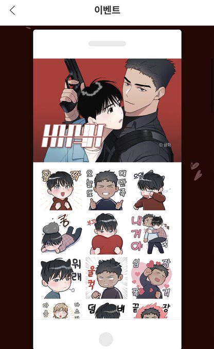 안녕하세요... 오늘부터 봄툰에서 🌸남남북남🌸 10화 이상 소장해주신 분들께 이모티콘을 드립니다... 부끄럽습니다만 열심히 그렸습니다... 많이 사용해주세용... 💜