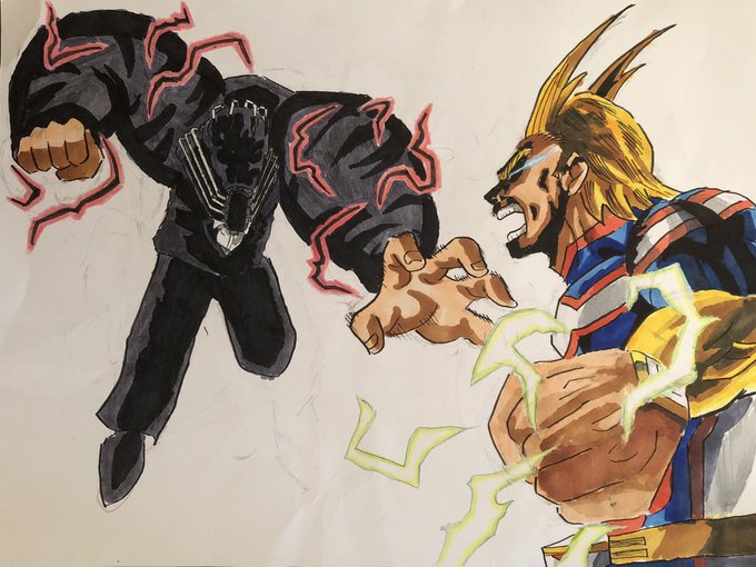 オールフォーワン VS オールマイト 的な絵を描いてみました! 結構自信作です