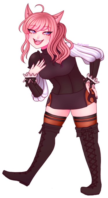 my bf fantasia’d like twice during the art party it was wild. his au ra is adorable so I doodled our charas together 🥺💖