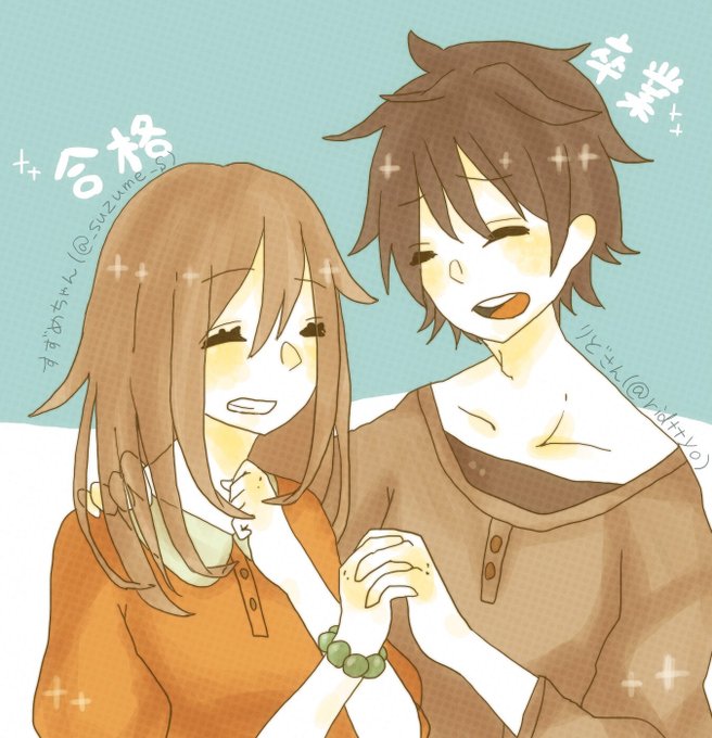 すずめちゃん( @_suzume_S )と、りどさん( @ridttyo )のおめでとうコンビ描いた、