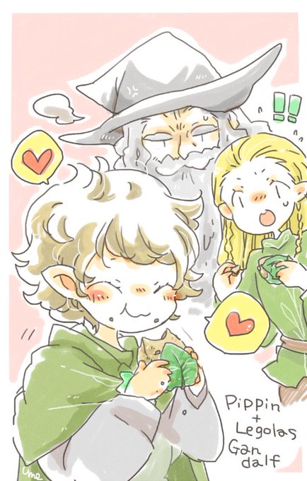お題「もぐもぐ」をお借りしました 説明を聞かずにレンバスをもぐもぐしちゃったピピンとレゴラスとガンダルフ です #1hTolkien