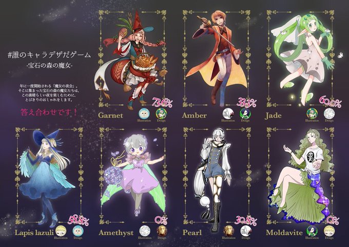 参加アカウント(@0umejam0)が鍵垢の為、こちらから答え合わせ失礼します 翡翠魔女のデザインを担当させて頂きました* 餅村さん、たまらなく可愛い翡翠魔女を描いて下さって、ありがとうございました//// #誰のキャラデザだゲーム