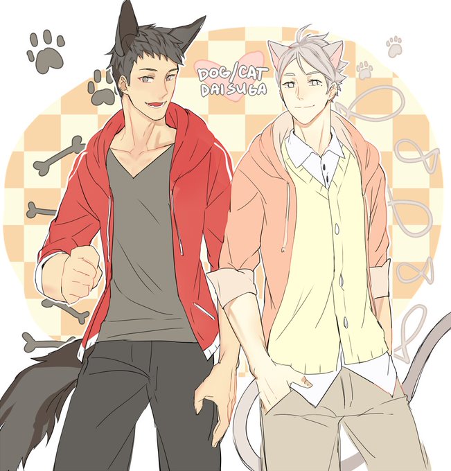 i made fanart of andy's (@HeyZambie) puppy/kitty au! err--- dog/cat au bc i cant draw kids TTqTTa