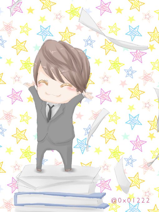 しげちゃんがにゅーすにっぽん衣装でジャンプしてる(説明 CDデビュー日おめでたい♡ #NEWS版深夜の真剣お絵描き60分一本勝負 #NEWSでお絵かき