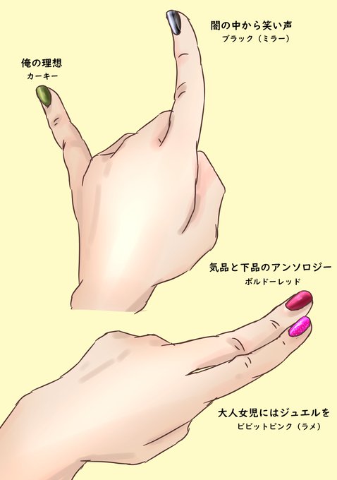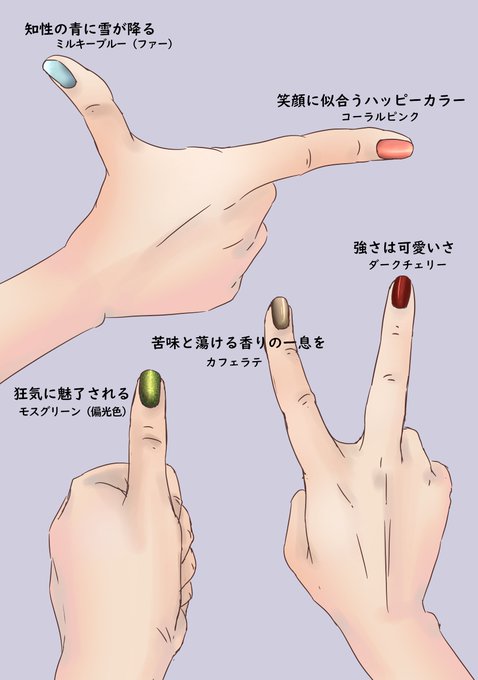 この前言っていた、友人たちに送りたいネイルを手の練習を兼ねて。イメージカラーとかでなく、似合いそうだと個人的に思ったものです。これかな…ってのを探り当ててね。