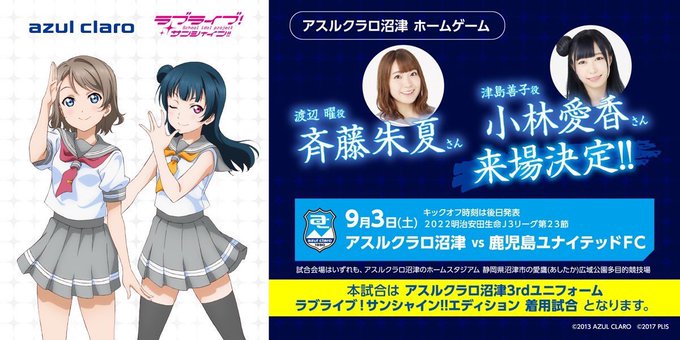 今日勝てなかったのは残念だけど、来週はしゅかしゅーとあいきゃんが来場する試合で負けるわけにはいかない‼️ 来週は絶対にみんなの絆で、鹿児島に勝ちましょう‼️ #アスルクラロ沼津 #lovelive #Aqours