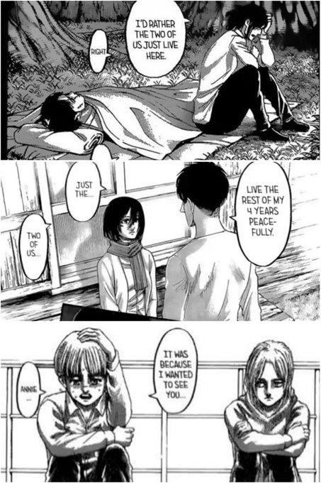 THE WAY HANGE AND MIKASA ARE HOLDING WEAPONS WHILE THEIR MALEWIVES PREPARE FOR SOME SHIT IM SO IN LOVE