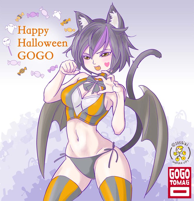 ビキニの日なのでハロウィン絵だけどゴーゴーちゃんのビキニ姿を🙏 #ビキニの日