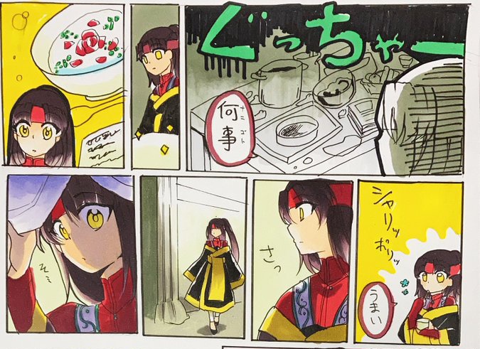 これまでのイラストだとヴァータさんが一緒だったので、ある意味初ソロイラストでは?癖強キャラの中では常識人ぶって、おとなしい一匹狼やってるけど、弟子にからかわれたり、家のキッチンめちゃくちゃにされたりと、苦労(?)してる。虚偽の魔王って何するの?ていわれても「さぁ…?」と