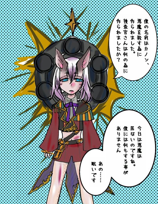 悪魔と対峙したのみ、後ろのガトリングの羽根(?)が出現。弾切れすると動かなくなるのに自分で温存できない子なので捜査官さんに止めて貰えたらなと思ってます。