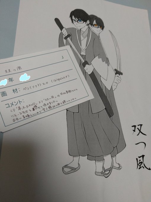幕末BANDの花江さんとの「双つ風」が大好きすぎる女なので高校の文化祭のイラスト展示に描かせて頂きました、、!! 学校の往復とかに聴いてるんですけど1日50回聴いても飽きないの最強すぎませんか🤦♀️🤦♀️ 歌詞といい声の揃い方といいめちゃめちゃすこです……ほんとに全人類聴いて…… #リモー絵先生